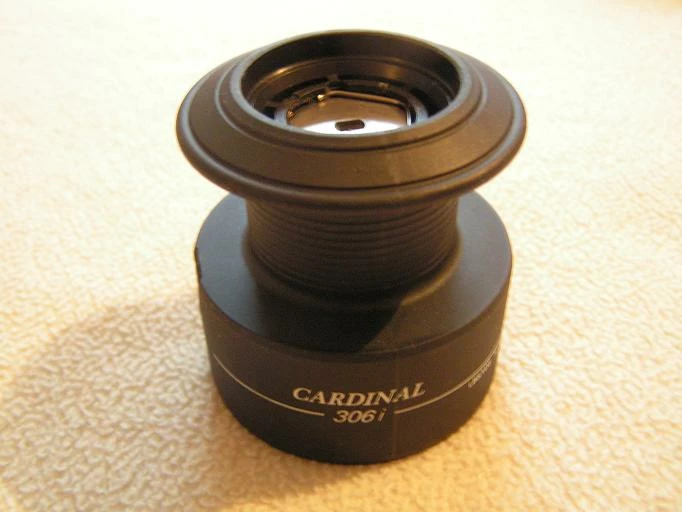 Abu Garcian Cardinal 306i -etujarrullisen kelan grafiittinen varapuola.