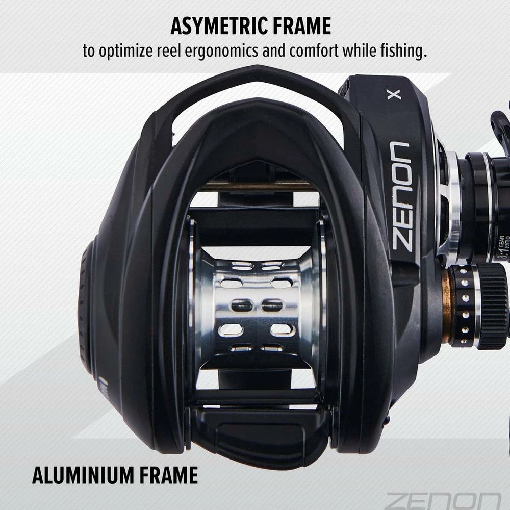 Engineered to give anglers the compact performance of the Zenon® MG-X along with the versatility of a heavy-duty fishing reel, the Zenon® X low profile reel features an aluminum frame for added strength and C6 carbon side plates and an aluminum main gear for maximum weight optimization. Easily adjustable and ultra compact, the Zenon®X is suited to throw anything from lightweight finesse baits all the way to heavy jigs.