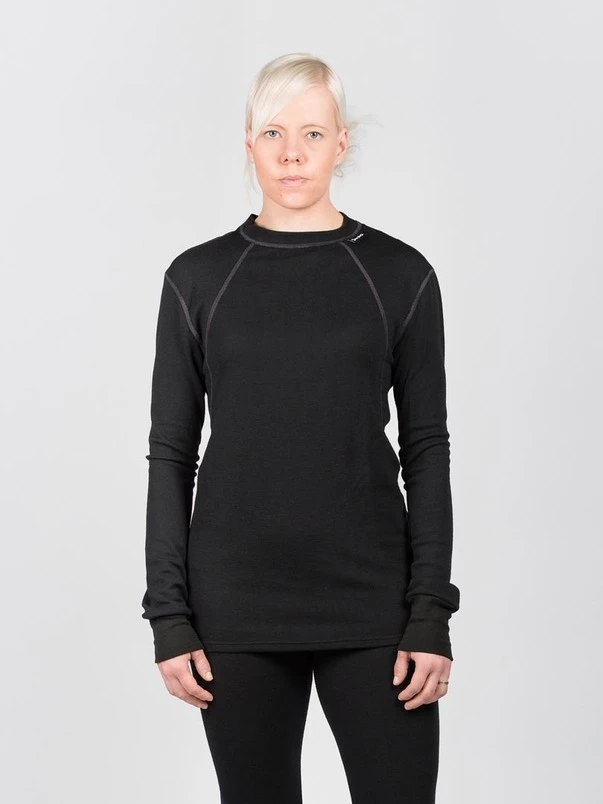 Tyköistuva pitkähihainen paita, jossa o-pääntie. Soveltuu kerrospukeutumiseen työssä ja vapaa-ajalla. Neuloksessa tekninen kaksikerrosrakenne, jossa sisempi kerros on kosteutta tehokkaasti siirtävää polypropyleeniä ja ulompi lämpöä sitovaa SuperWash- ja koinsuojakäsiteltyä merinovillaa. Kaikki saumat ovat litteitä tasosaumoja, joten tuote on miellyttävä päällä – ei paina tai hankaa ihoa. Konepesu 40 asteessa, mieluiten villalle sopivalla pesuaineella.