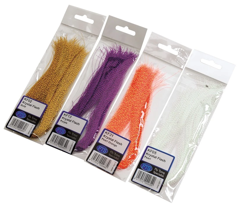 FTS Krystal Flash on suunniteltu keinomateriaaliksi, jota laitetaan siiven joukkoon luomaan lisää välkettä. Materiaali ei ole tasainen vaan ns. pakotettu, joten se taittaa hyvin voimakkaasti valoa ja luo lisää kimalletta. Todella hienot helmiäisvärit. Edullinen ja laadukas materiaali.
