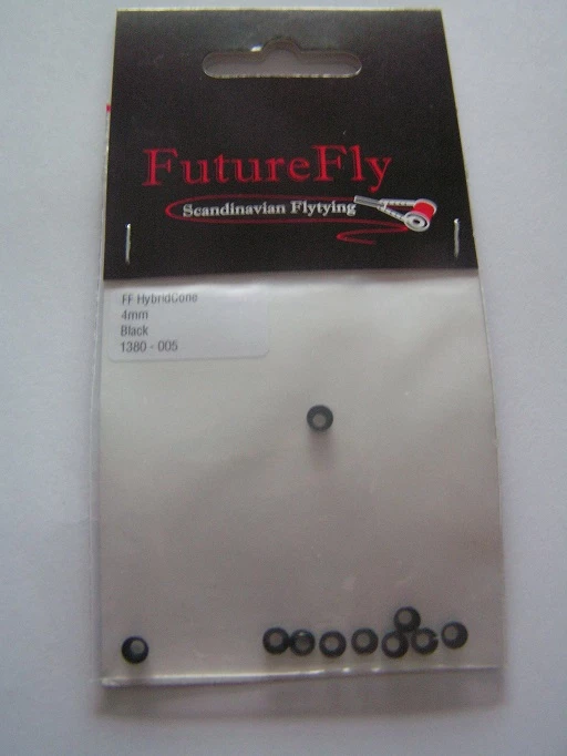 Future Flyn HybridCone on yhdistelmä perinteistä Coneheadia ja Disc-levyä. Future Flyn HybridCone antaa perholle painoa, mutta samalla työntää vettä pois perhosta, jolloin perhon materiaaleille tulee lisää liikkuvaa elävyyttä. Pussissa 10kpl päitä, koko/reiän koko:4mm/1.9mm.