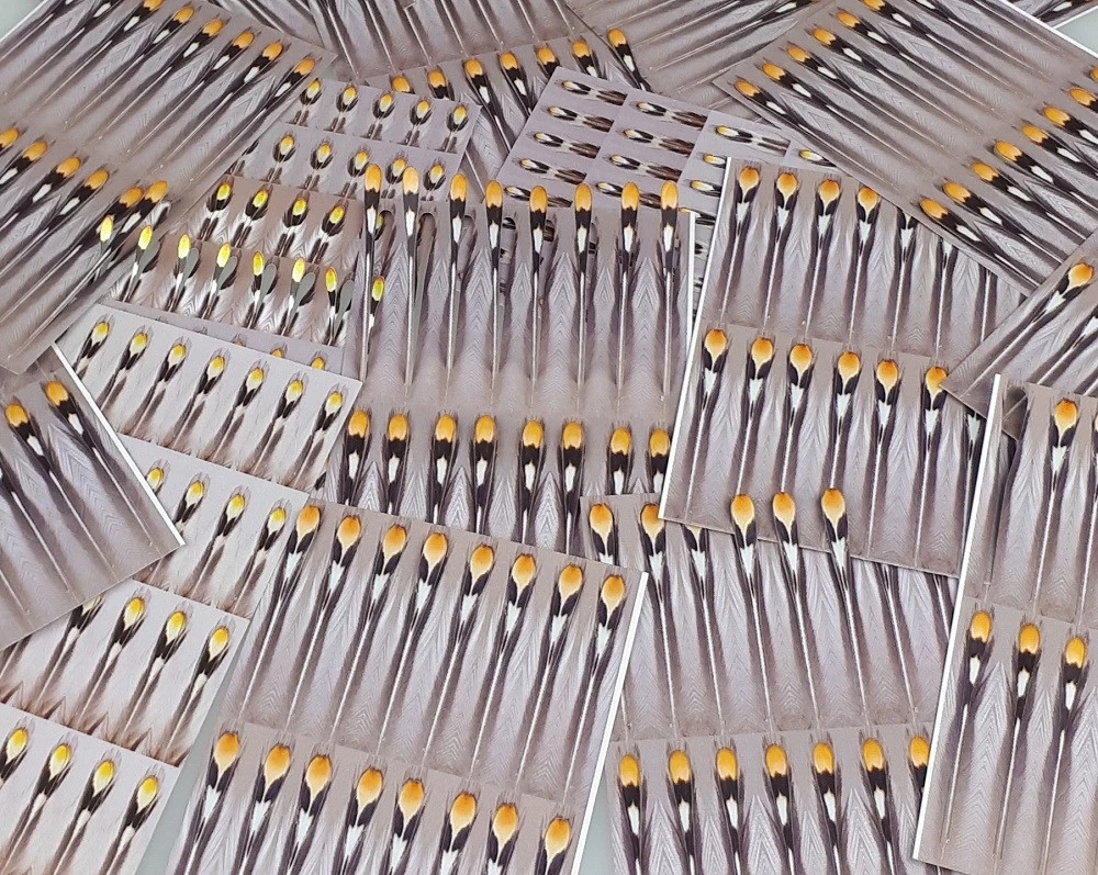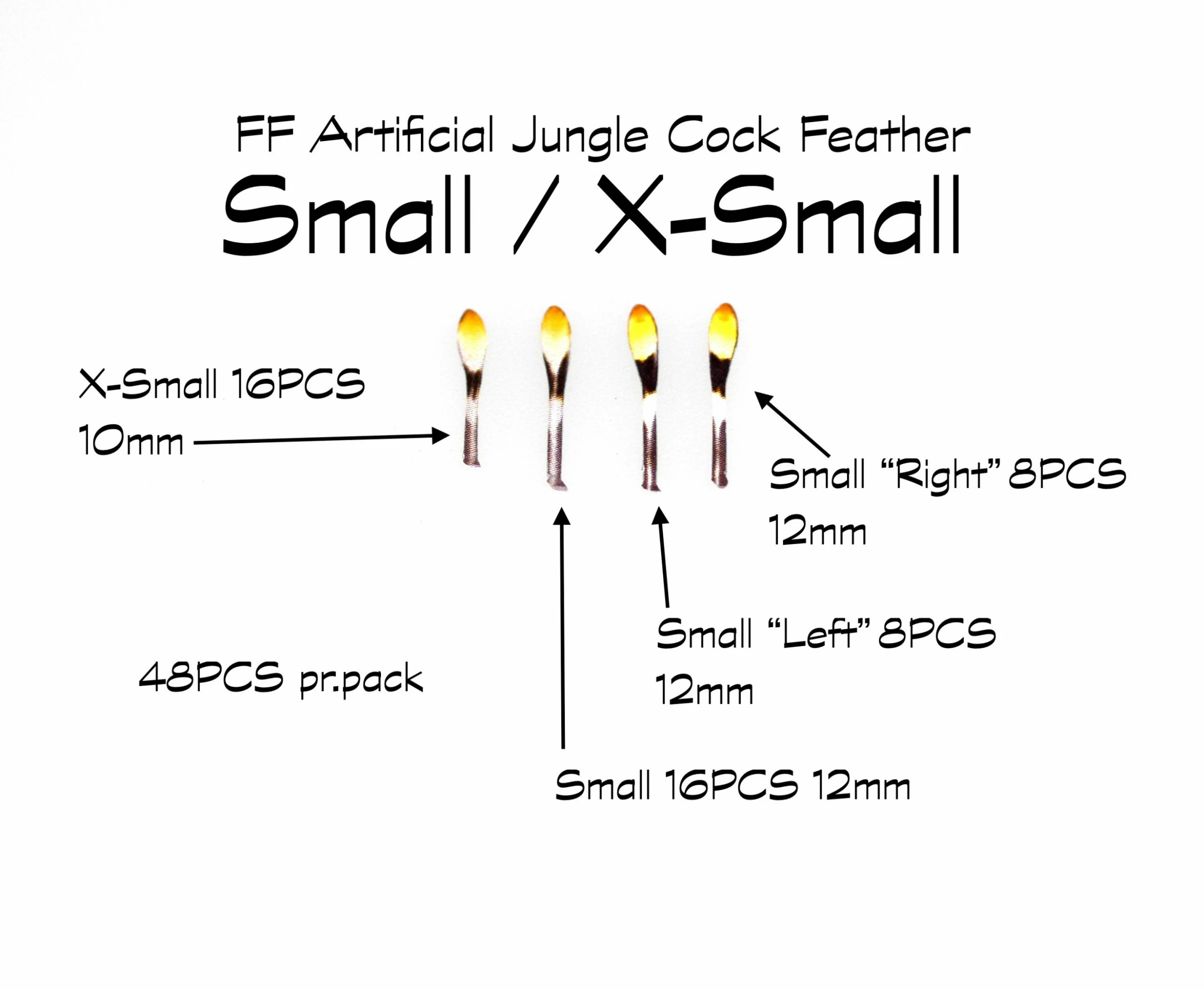 These Jungle Cock subs we have been working on a couple of years now. The hard part was to find the way to lazer cut theme so they would be very thind in the ”stem” just like a nautral feather, and we found the way:-) They are made of one layer very strong fabric and are moving very well in the water. They vill never split in 2 We made them in 4 size, and packed them with 48 eyes in each pack. And there will be few medium in the Large, and few small in the Medium, so you get some different sizes in one pack.