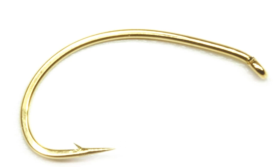 Kaareva koukku pintaperhoille ja pupille. Erinomainen koukku mm. Klinkhammer -perhoille. Kullanvärinen. 25kpl koukkuja rasiassa. Koot:14.