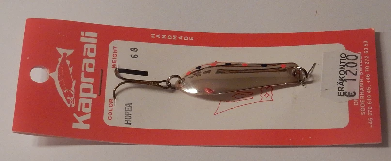 Onni Kapraalin valmistama mahtava lohi-taimen lusikka koviin koitoksiin, paino:6grammaa.