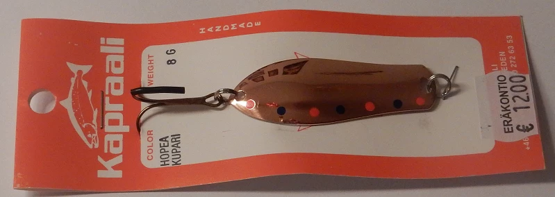 Onni Kapraalin valmistama mahtava lohi-taimen lusikka koviin koitoksiin, paino:8grammaa.