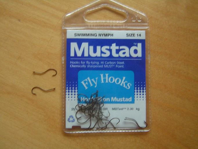 Mustadin kemiallisesti teroitettuja nymph-koukkuja suoralla silmällä.