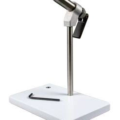 After fielding many requests for an inexpensive, yet durable and functional non-rotary vise, PEAK has taken our design principles and applied them to this new and exciting tool. The PEAK non-Rotary vise uses the same clamping system as the tried and true PEAK Rotary Vise. The base is slightly smaller and lighter in weight than the Rotary Vise, making this item a must have if you need a light weight travel vise. The base has the durable white powder coat finish that we’re known for, and it still disassembles and packs flat for ease of transport. This base also includes an additional hole for our accessory shaft (not included) and all PEAK accessories except our material clip will work with the non-Rotary vise. As with the Rotary Vise, optional midge and saltwater jaws are available for the PEAK non-Rotary Vise (jaws for the Rotary Vise and non-Rotary Vise are not interchangeable). The PEAK non-Rotary vise will fit our C-Clamp option but is only sold with the pedestal base.
