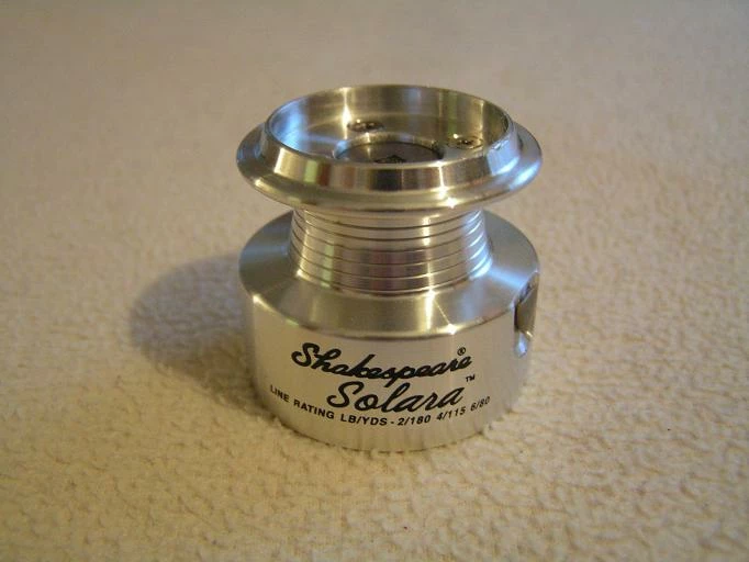 Shakespeare Solara -etujarrullisen kelan alumiininen varapuola. Siimatilavuus:2lb/180yds,4lb/115yds,6lb/80yds.