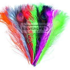 Silvergrey:n Riikinkukon silmähöyhenissä on täyteläisimmät siikaset. Riikinkukon silmähöyheniä käytetään useimmiten perhojen runkoihin ja streamereiden siipiin. Hyvä perusmateriaali.