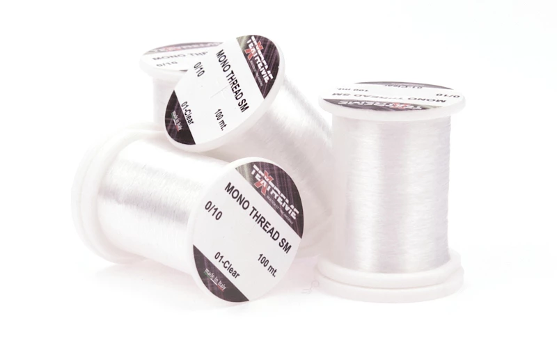 Stretched, transparent monofilament, suitable for tying flies with translucent bodies for which the thread does not have to cover the natural material utilized, as is the case with certain special dressings in CDC, for example. Only available in the clear transparent version. Spool of 100 mt.