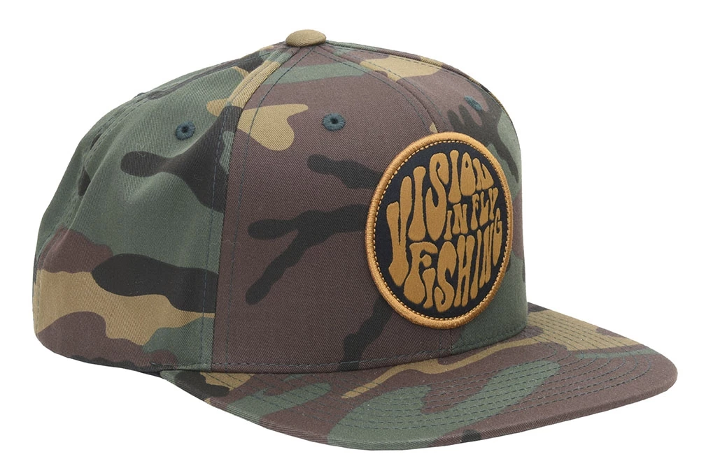 Korkea profiilinen villa ja polyesteri -kankainen Cappi maastokuviolla, jonka etuosassa on Vision Psyke-logo.
