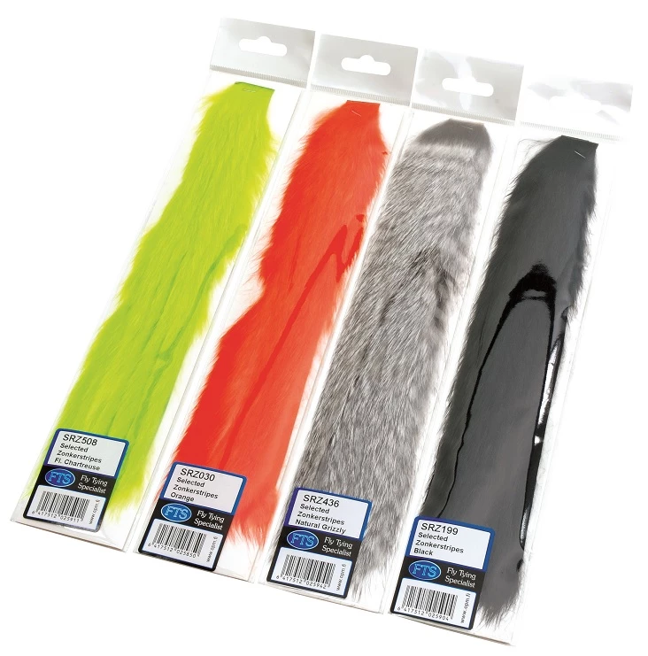 FTS:n 3mm kanizonkerit ovat sitä, mitä vaativa perhonsitoja tarvitsee. Laadukasta karvaa, leveät nahkapalat ja zonkeria on paljon, joten saat enemmän vastinetta rahalle. Uutena saatavissa myös Black Barred- sekä Two-Tone-värjätyt. Saat näyttävyyttä perhoihin hyvin helposti ja uusia ideoita haukiperhovalikoimaasi.