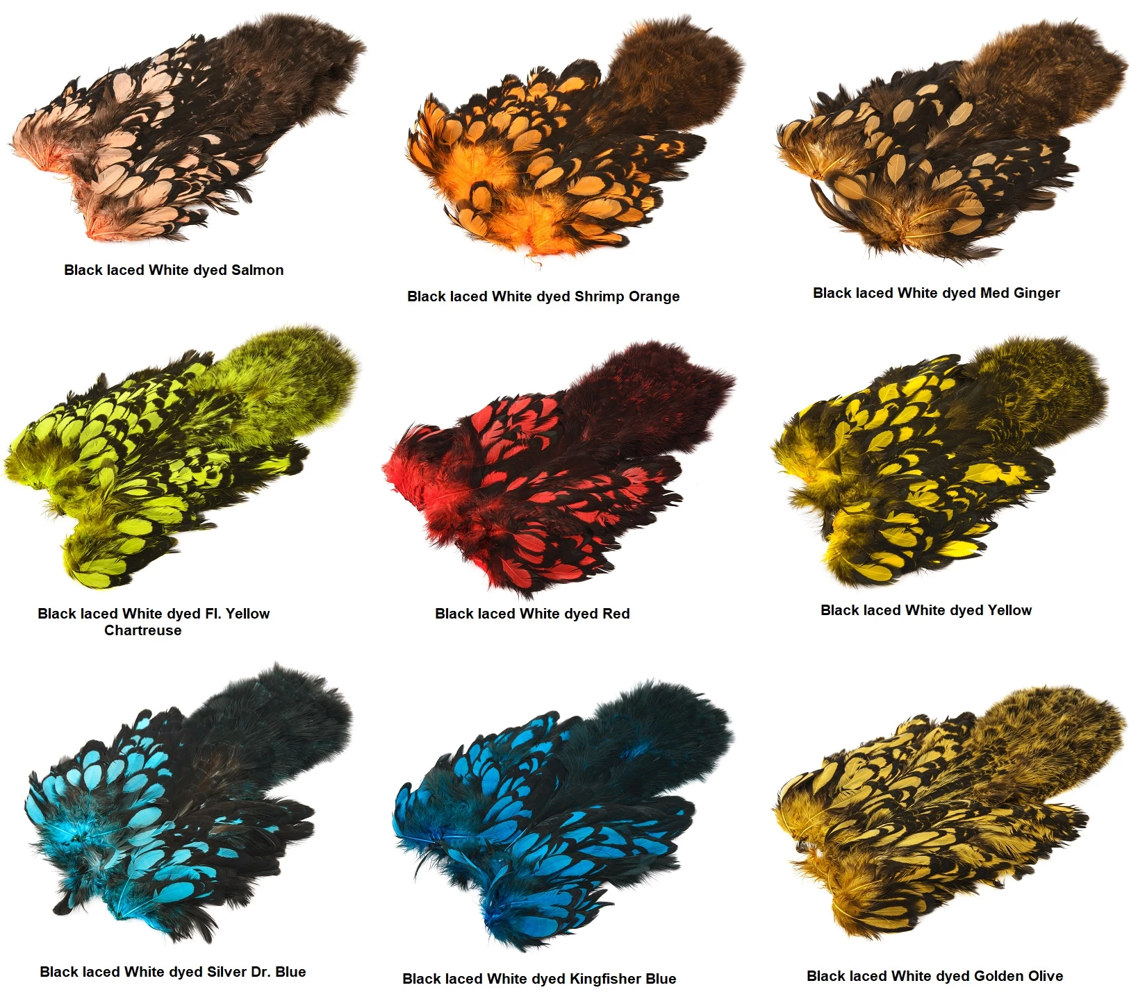 Two very unique feathers in 1 pelt. The first feather, the soft hackle, is a wide, webby, soft feather great for large collars on salmon, steelhead, bass, and saltwater flies. The second feather, the chickabou is a smaller marabou. Much finer than turkey marabou, the chickabou is excellent for small streamers, leech patterns, dragonfly, and damselfly nymphs.